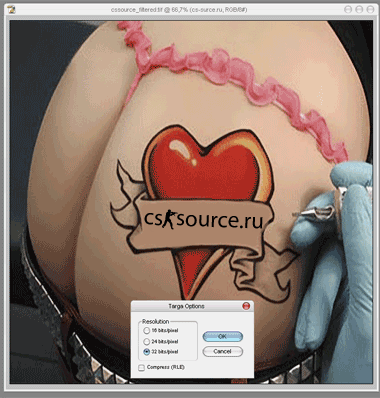 Хочу рассказать о создании бэков для вашей любимой игры. Итак, начнем. Будем работать на примере программ: Photoshop и Animated.texture.converter. Открываем фотошоп, берем понравившуюся картинку, в данном случае — это фотография мягкого места одной из больших поклонниц нашего сайта. Почему поклонницы? Да вы сами посмотрите. Так вот, открыли, меняем размер: Image – image size, снимаем галочки с Constrain Proportions чтобы получилась равносторонняя картинка 1024х1024. Не пугайтесь, что имидж немного видоизменится и будет выглядеть вытянутым, все станет на свои места. Сохраняем ее в формате TGA (Targa) с компрессией 32 бита (см.скриншот), под именем spray001 (Важно, чтобы имена были такие, какие указаны в статье). Сохранили? that’s good…. Файл spray001.tga помещаем в папку программы для конвертирования. К примеру C:/Animated.texture.converter/materialsrc/animated. Запускаем фал convert.bat и заворожено смотрим на священнодействие конвертирования, очень интересное зрелище, поверьте! (шутка). Счастье ваше воззнаменуется надписью Hit a key to continue. Что в переводе означает, «Усё готово, шеф». Идем в папку C:/Animated.texture.converter/materials/animated и видим там….. ой, что это?!?! Оно самое приятель... файл spray.vtf который переименовываем в background01.vtf. Половина дела сделана, осталось самое важное, найти, куда же этот файл впихнуть (циникам просьба не умничать). Кладем его вот в эту папку C:/Program Files/Valve/Steam/SteamApps/ВАШ АККАУНТ/counter-strike source/cstrike/materials/console/ Запускаем игру и видим... упс...что это?!?!?! Оу-ла-ла, попка на весь экран... хе-хе. А за сим, Enjoy!